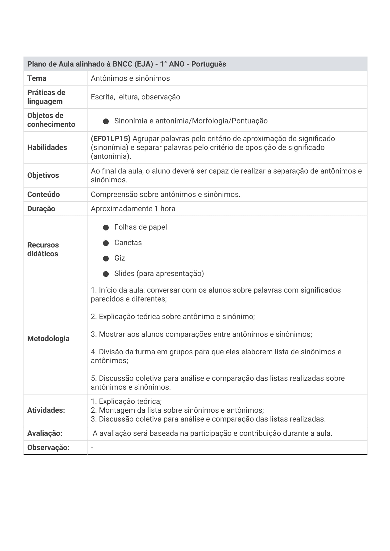 Materiais (EJA) de qualidade e atualizado pela BNCC (100% editável).