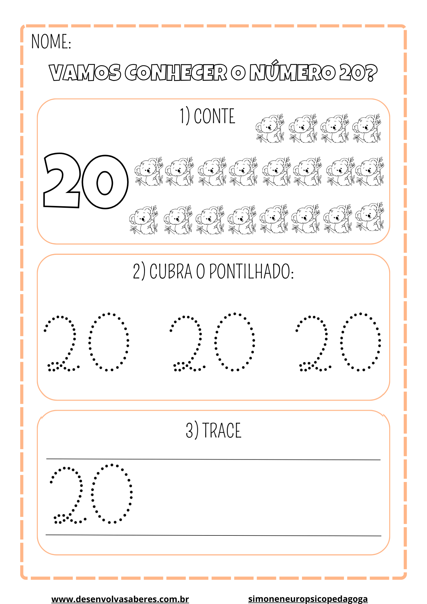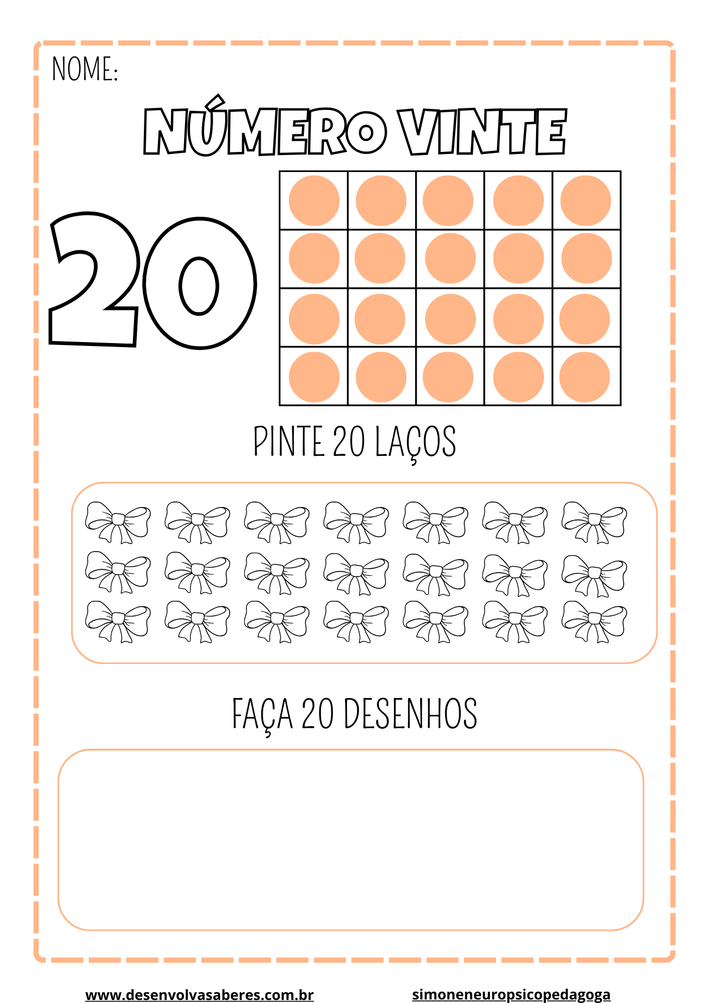 2ª Recurso – A apostila “Quero Aprender os Numerais” inclui 40 páginas de atividades, dos numerais de 1 a 20, ideais para crianças de 4 a 6 anos de idade.